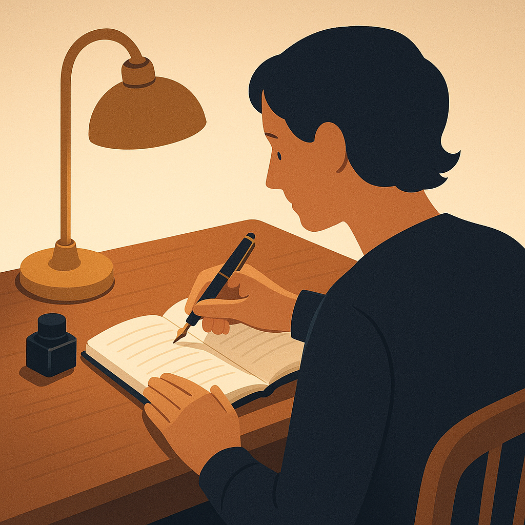 Simple Setup Tip: Keep your writing corner minimal and consistent. Clutter competes for your attention. A clean notebook, your pen, and a warm drink are all you really need to begin.